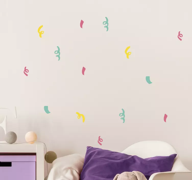Introducing our Colorful curved shapes decoration wall sticker, a stunning design that features a delightful array of playful and modern twisted shapes. This vibrant set of confetti patterns creates a visually stimulating atmosphere, perfect for brightening up any space. The curves in the design add an artistic flair, making it a captivating choice for those looking to enhance their decor!