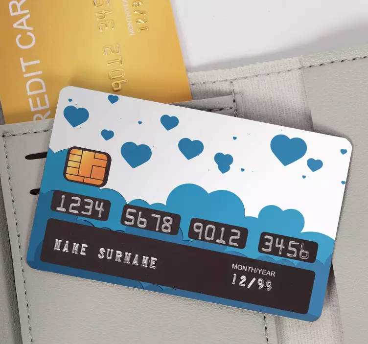Choosing the Credit card sticker cloud hearts design credit card sticker from our online store means selecting a design that is not only made for credit cards but also versatile enough to adorn any flat surface! Crafted with high-quality materials, this sticker promises durability and a long-lasting vibrant look. Stand out with a product that combines functionality and fun!