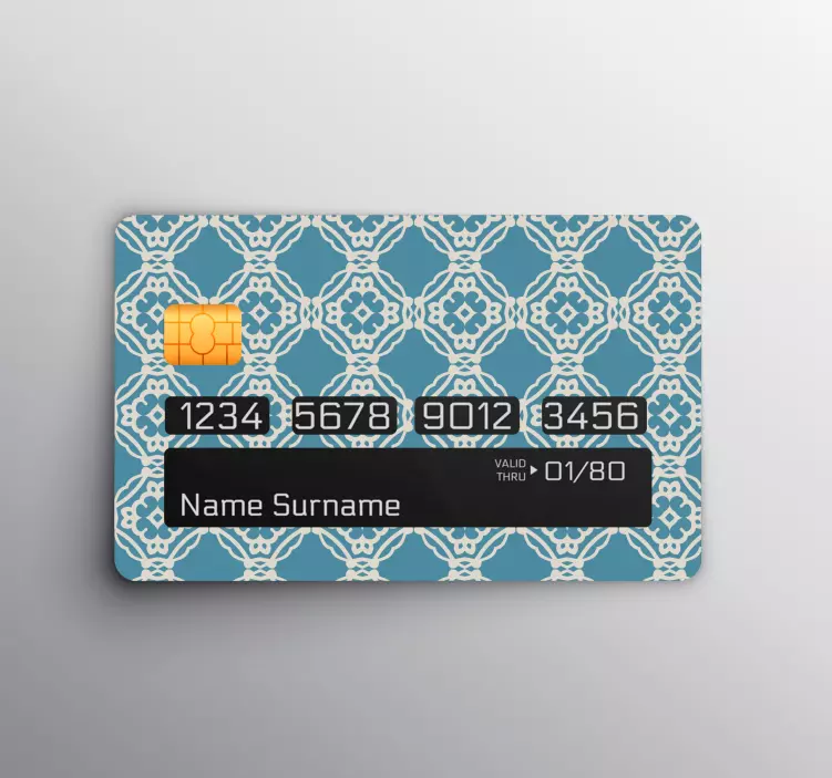 Introducing our stunning credit card sticker with patterned design, featuring an exquisite antique tile pattern in vibrant blue hues. This ornamental geometric design brings a unique texture to your finances, making it a perfect personalized accessory for your credit card. Transform your card into a stylish statement piece that reflects your individuality!