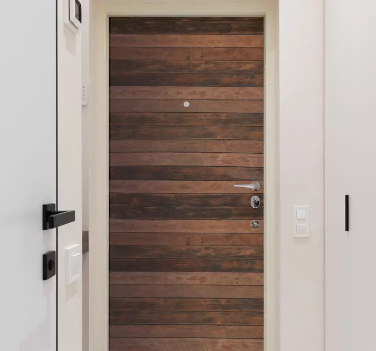 Transform your space with our stunning Door sticker wooden door finish, featuring a beautifully designed graphic that mimics the rich texture of natural wooden planks. In warm brown tones, this horizontal design brings a touch of rustic charm to any interior, making it the perfect addition to your home entrance. Elevate the aesthetics of your doors effortlessly!