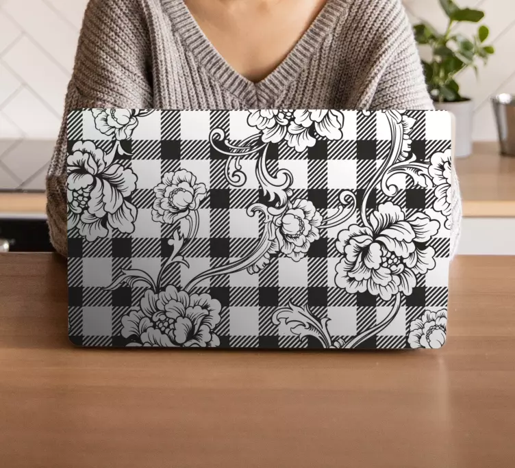 Floral checkered motif laptop skin