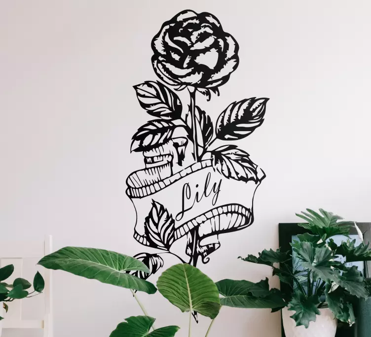 Transform your space with our stunning Flower wall sticker black rose decor. This elegant design combines intricate drawings of flowers and ribbons with the beauty of nature, featuring a personalized touch with your custom name. The black and white floral theme adds a sophisticated flair, making it a perfect addition to any room!