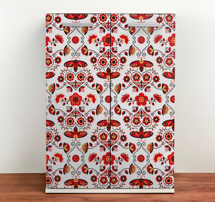 Transform your kitchen with our stunning Fridge sticker botanical design artwork, featuring a vibrant array of flowers and butterflies. The ornate patterns capture the essence of nature, incorporating folk elements that bring a colorful flair to your home decor. This artwork is designed to evoke joy and a sense of tranquility, making your fridge not just an appliance, but a piece of art!