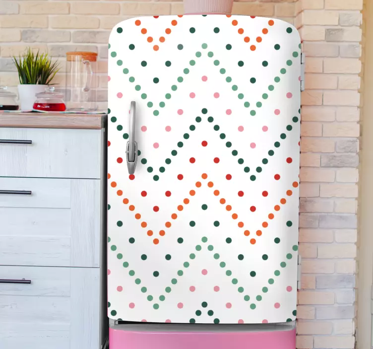 Introducing our Fridge sticker vibrant chevron pattern, a stunning design that features a playful mix of dots, zig zags, and polka dots in a vibrant multicolor palette. This modern and colorful sticker is perfect for adding a splash of joy to your kitchen space, transforming your fridge into a delightful focal point that reflects your personality.