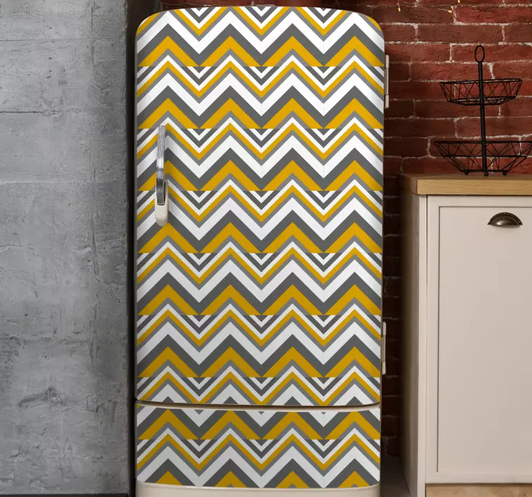 Introducing our Furniture sticker chevron pattern cover, a stunning addition to your home decor! This design features a captivating nordic aesthetic with a playful zigzag and triangle motif in vibrant yellow and sophisticated gray. It's a modern take on patterns that will effortlessly enhance the ambiance of your space.