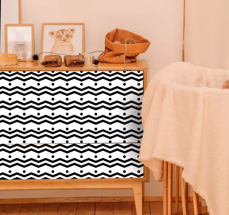 Introducing our stunning Furniture sticker chevron pattern design, a perfect blend of modern aesthetics and timeless style! This eye-catching design features a striking black and white zigzag pattern, showcasing geometric lines that effortlessly elevate the look of any furniture piece. With its stylish appeal, this furniture sticker is a fantastic way to transform your space into a chic haven.