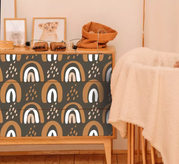Transform your living space with our Furniture sticker colorful arch designs, featuring a vibrant blend of rainbows, raindrops, and playful geometric patterns. This modern and textured design will brighten up any furniture piece, adding a splash of color and creativity to your home decor!
