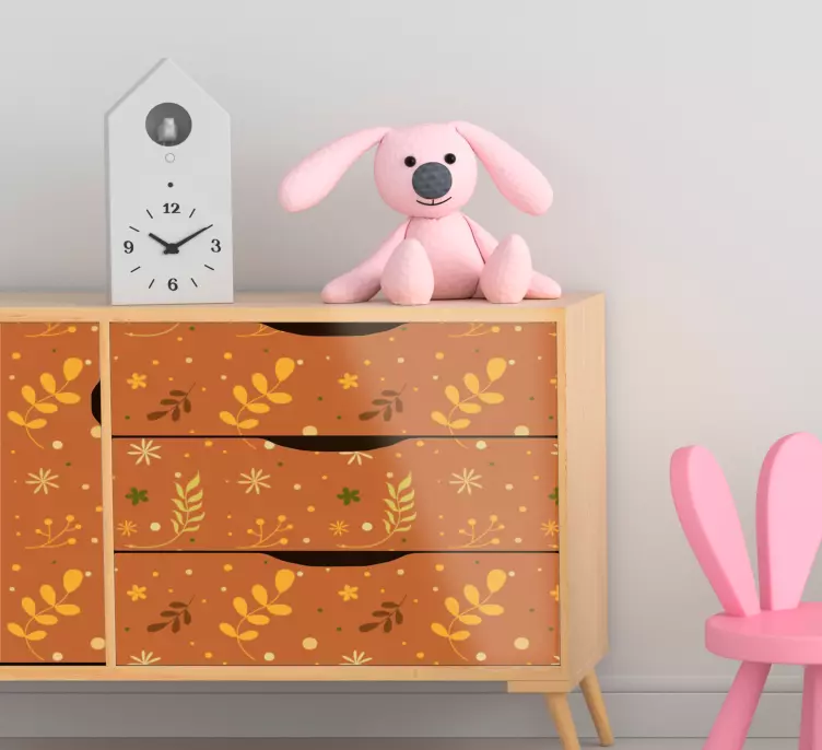 Transform your living space with our stunning Furniture sticker floral pattern design. This eye-catching design features delightful twigs and leaves that create a playful yet sophisticated atmosphere. With warm tones inspired by nature, this floral pattern brings a sense of tranquility and charm to your home, making it the perfect choice for anyone looking to elevate their decor.
