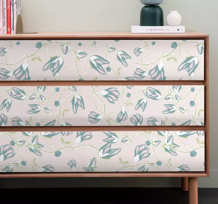 Transform your space with our Furniture sticker floral patterned drawer, featuring a stunning design that merges delicate flowers and lush leaves. The enchanting floral pattern in soft pink and vibrant green evokes a sense of tranquility and elegance, making it the perfect addition to any furniture piece!