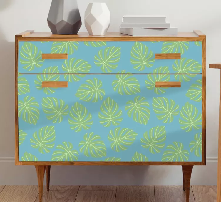 Transform your living space with our Furniture sticker leafy pattern design! This stunning design features a harmonious blend of blue and green hues, intricately showcasing leaves and tropical patterns that bring the essence of nature indoors. Perfect for adding a touch of greenery to your furniture, this decorative piece is sure to invigorate any room!
