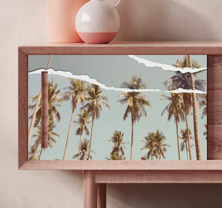 Transform your space with our stunning Furniture sticker tropical palm view. This exquisite design features beautiful palm trees, evoking a sense of nature and tranquility. The torn paper effect adds a unique touch, creating a peaceful atmosphere in your home. Perfect for bringing the essence of a tropical paradise right into your living room!