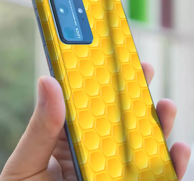 Introducing the Huawei sticker honeycomb pattern, a stunning design that features a series of interconnected hexagons, mimicking the natural beauty of a honeycomb hive. This vibrant yellow hexagonal pattern creates a unique texture that will effortlessly enhance the aesthetic of your phone. Its captivating geometric design is not only visually appealing but also a great way to express your personality!