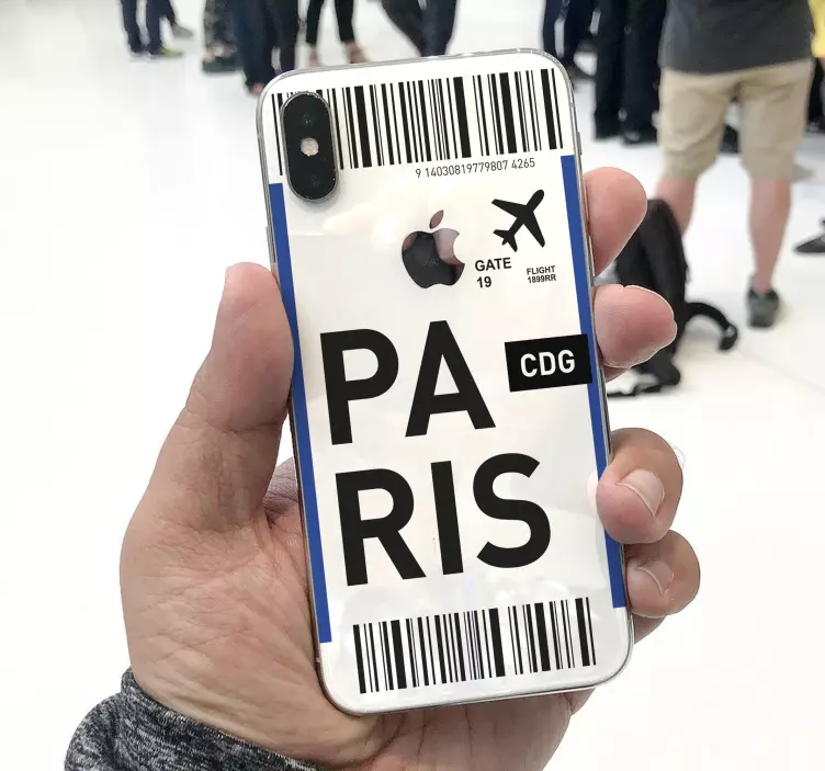 Introducing the Iphone sticker flight ticket to Paris, a delightful design that captures the essence of travel with its vibrant graphics. Featuring elements like a plane, ticket, and iconic Parisian landmarks, this sticker adds a touch of adventure to your phone. The text and barcode details enhance its authenticity, making it a perfect accessory for any travel enthusiast.