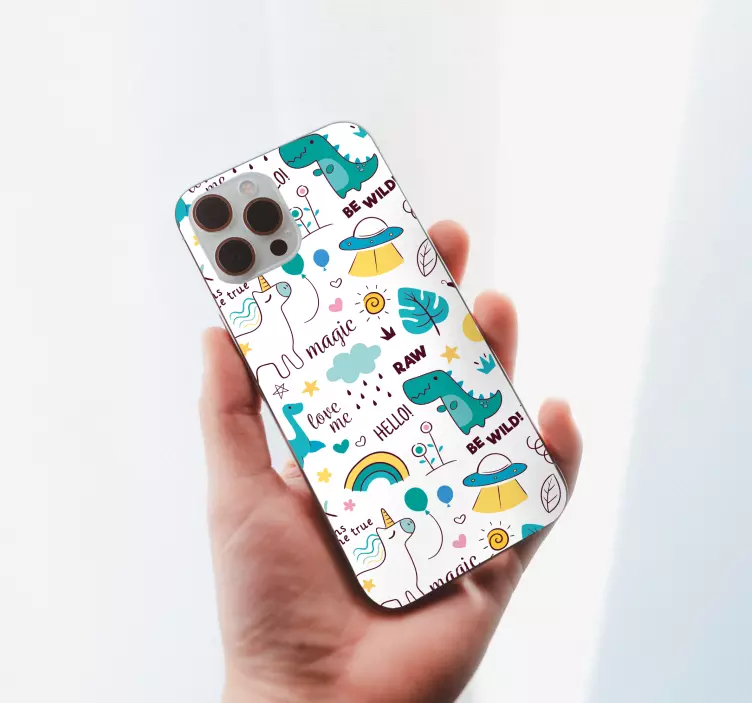 Introducing our delightful iPhone sticker whimsical creature designs, featuring an enchanting array of dinosaurs, unicorns, and other cute fantasy characters! This colorful design bursts with magic, making it the perfect adornment for your phone. Elevate your device with these charming patterns that bring a touch of joy and wonder to your everyday life!