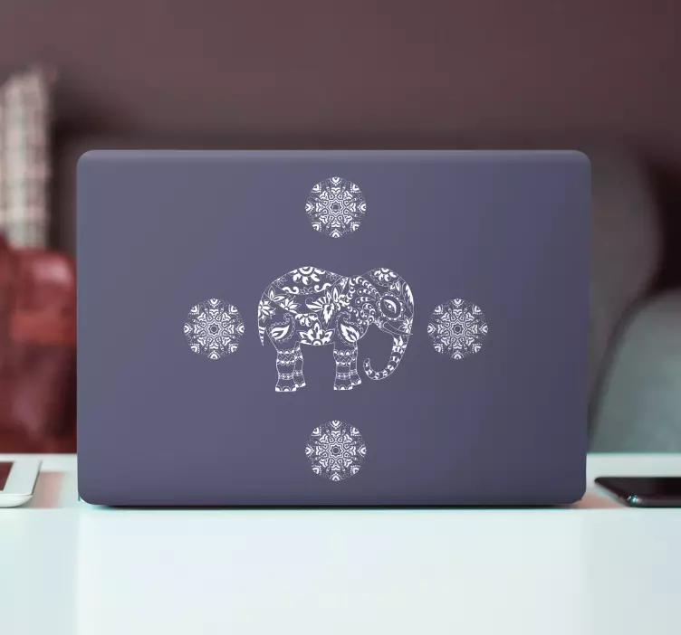 Elevate your laptop's aesthetic with our stunning Laptop skin elephant decorative figure. This unique design features a beautifully crafted elephant shape adorned with intricate mandalas and floral patterns in vibrant purple hues. Its decorative appeal transforms your laptop into a work of art, making it not just a device, but a statement piece!