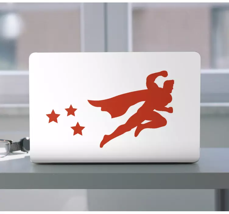 Laptop sticker superhero flying stars