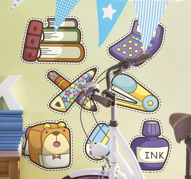 Applying our Location sticker colorful stationery symbols Location decal is a breeze! Simply choose a flat surface, peel off the backing, and stick it on. With its built-in adhesive, you can effortlessly create a cheerful atmosphere wherever you desire.