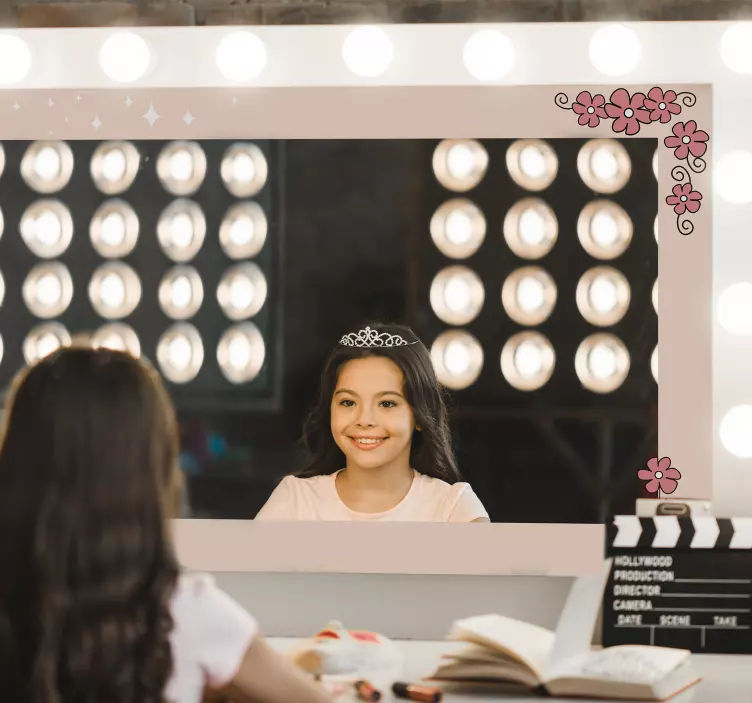 Transform your space with the Mirror sticker charming floral frame! This delightful design features a playful porcupine surrounded by cheerful daisies, all encased in a stylish frame that reflects light beautifully. With its cute pink flowers and sparkling details, this mirror sticker brings a childlike joy to any room, making it perfect for both kids and the young at heart!