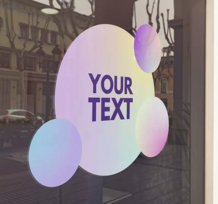 Introducing our stunning Shop window sticker customizable text circles, designed to elevate your space with a splash of modern flair! Featuring a captivating gradient of colors, fluid abstract shapes, and geometric forms, this product offers a unique way to showcase custom text. Transform your shop window into a vibrant canvas with these colorful circles that perfectly blend style and functionality!