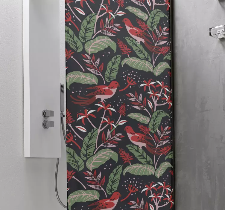 Introducing our stunning Shower screen sticker botanical bird design, a delightful blend of vibrant nature that transforms your shower space into a serene oasis! Featuring intricate patterns of lush leaves and charming birds, this design brings the beauty of the outdoors right into your bathroom. The floral elements in green and red hues create a refreshing atmosphere, making every shower feel like a rejuvenating experience!