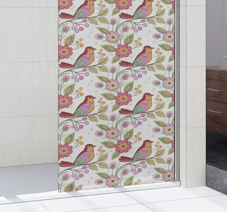 Transform your bathroom into a vibrant sanctuary with our Shower screen sticker colorful birds design. This stunning design features a harmonious blend of colorful birds gracefully perched among blooming flowers, all intricately woven into a captivating pattern that reflects the beauty of nature. Each glance at this delightful artwork will uplift your spirits, making your shower space truly enchanting!
