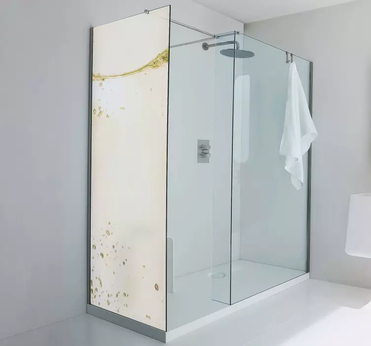 Transform your bathroom into a modern oasis with our Shower screen sticker elegant water splash design. This stunning design features a captivating blend of liquid and bubbles, reminiscent of a refreshing aqua experience. The translucent photography creates an illusion of water splashes, bringing a vibrant touch to your shower space while maintaining a sleek and sophisticated look.