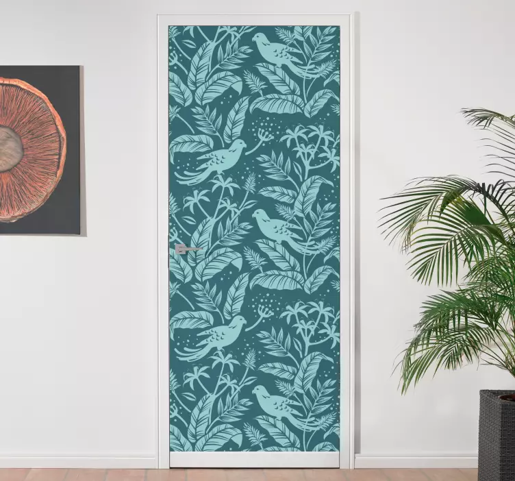 Transform your space with our stunning Tropical bird door sticker, featuring a vibrant graphic design that beautifully captures the essence of nature. This adhesive showcases an exquisite pattern of colorful feathers, lush leaves, and playful birds, bringing a tropical flair to any door. With its floral elements, this door sticker invites the beauty of the outdoors right into your home!