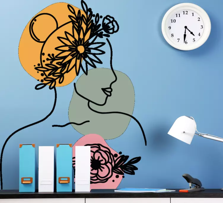 Introducing our stunning Wall sticker elegant female silhouette, a captivating design that beautifully captures the essence of femininity. This exquisite piece features a graceful woman in a minimalist style, showcasing a striking face rendered in delicate lineart. The abstract portrayal is adorned with flowers that add a touch of nature, creating a lovely portrait that is both floral and serene. Perfect for those who appreciate minimalist art, this female silhouette will undoubtedly enhance any space!
