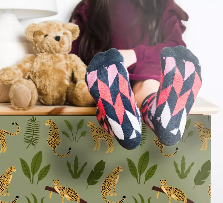 Transform your space with our stunning Wild animal sticker leopard print jungle design! This captivating creation features an eye-catching pattern of leopards set against a backdrop of vibrant leaves and lush jungle foliage. The green and tropical hues celebrate the beauty of wildlife and nature, making it a perfect addition to any interior or exterior decor. Embrace your wild side with this floral pattern that brings the essence of the jungle into your home.