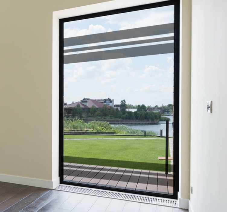 Reference: A53832Transform your space with our Window sticker dark grey horizontal stripes, featuring a stunning design of sleek, dark grey horizontal stripes that effortlessly enhance the aesthetic of any window or flat surface. This product boasts a satin finish that minimizes reflections, ensuring vibrant color intensity without glare. Made from high-quality materials, it offers durability of approximately 8-10 years and is resistant to wear and tear. Plus, it's easy to clean with just a damp cloth and a bit of neutral soap!