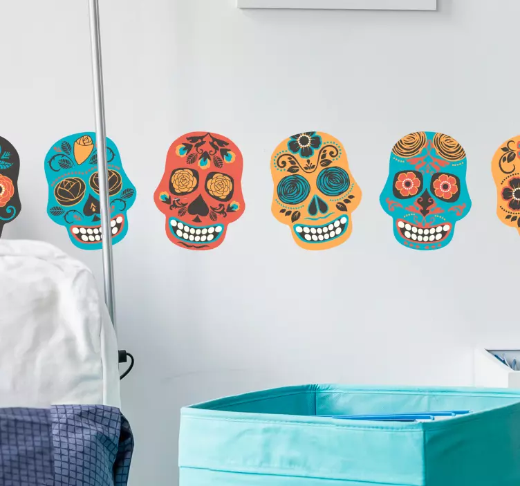 Reference: A13719Multicolored Decorative Wrestling Skulls Wall Border Sticker