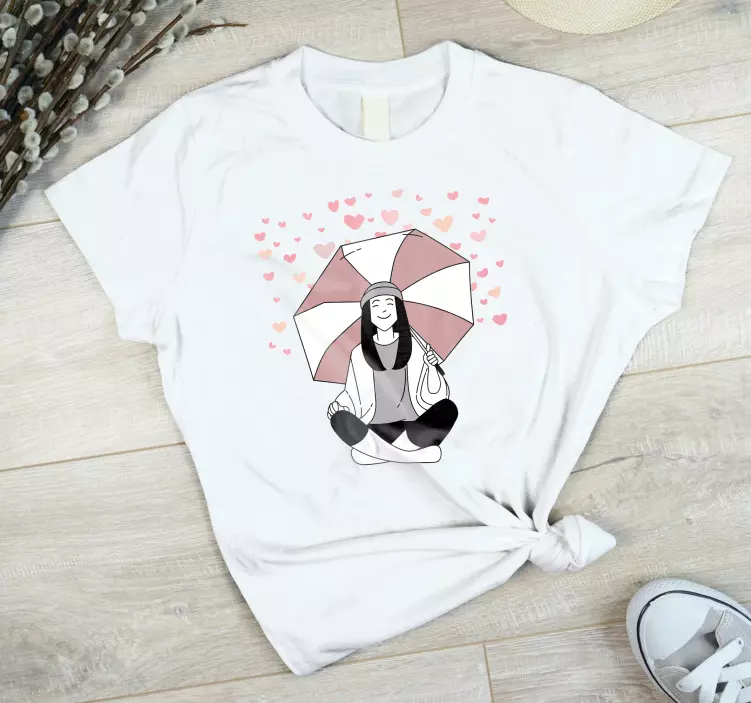 Introducing our Charming heart pattern t-shirt, a delightful blend of whimsy and comfort! This enchanting design features a cheerful girl holding an umbrella, surrounded by playful hearts that evoke feelings of love and joy, even on rainy days. With its cartoon illustration style, this cute and smiling t-shirt is perfect for casual outings, ensuring you stand out while feeling comfortable and stylish.