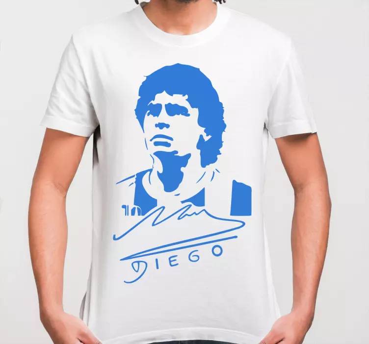 Introducing our Classic sports tribute t-shirt, a stunning tribute to the iconic Argentinian football legacy! This design features a striking monocolor silhouette of a legendary footballer, evoking a sense of nostalgia and passion for sports. Rendered in a crisp white and bold blue, this t-shirt is perfect for any fan who cherishes the spirit of football.