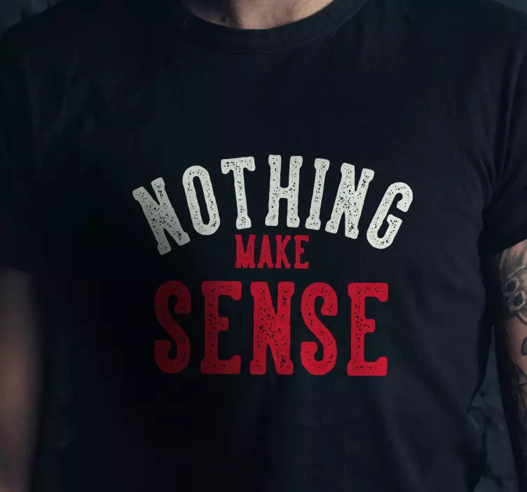 Introducing our Comfortable everyday wear t-shirt, a perfect blend of style and humor! This unique design features a bold, minimalist graphic that simply states 'nothing makes sense' in a fun way. The striking color combination of black, red, and white adds a touch of flair, making it an eye-catching choice for anyone looking to express their personality while staying comfortable.