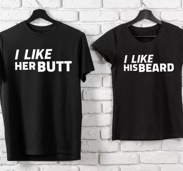 Introducing our Couple t-shirts couple humor tees, a perfect blend of fun and style! These matching tees feature a playful design that showcases humorous graphics, including elements like a butt and a beard, all wrapped in a sleek monocolor scheme. The funny text adds a touch of whimsy, making these shirts ideal for couples who love to share a laugh together. Crafted from high-quality materials, these black tees ensure comfort while you flaunt your couple goals!