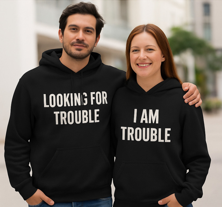Every couple deserves to showcase their unique bond, and our Couple t-shirts looking for trouble couple t-shirts are the perfect way to do just that! These t-shirts not only bring style but also a sense of fun to your wardrobe. Imagine wearing these matching tees while out on a date or during a casual day out with friends! They are a great conversation starter and a delightful way to celebrate your relationship. With their playful design and comfortable fit, these couple t-shirts are a must-have for every adventurous couple!