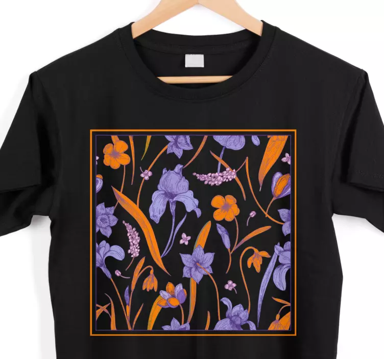 Experience the beauty of nature with our Floral pattern elegance t-shirt, adorned with a stunning design that features vibrant crocus flowers in rich shades of orange and purple. This charming illustration captures the essence of flowering plants, creating a colorful tribute to floral art. The graphics come alive, bringing a touch of nature to your wardrobe and making every day feel special!
