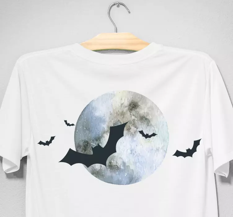 Introducing our stunning Halloween t-shirt bat and moon design, featuring a captivating illustration of bats soaring against a glowing moon. This spooky graphic captures the essence of a dark, night filled with flying creatures, making it the perfect addition to your Halloween wardrobe. Get ready to embrace the festive spirit with this eye-catching Halloween t-shirt!