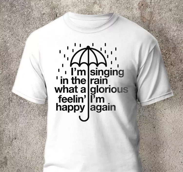 Introducing our Happy rainy umbrella quote t-shirt, a delightful blend of whimsy and warmth that celebrates those glorious rainy days! The design features a charming umbrella adorned with joyful lyrics that sing a happy tune, inviting you to embrace the beauty of rain. This t-shirt perfectly captures the feeling of joy, making it a perfect addition to your wardrobe!