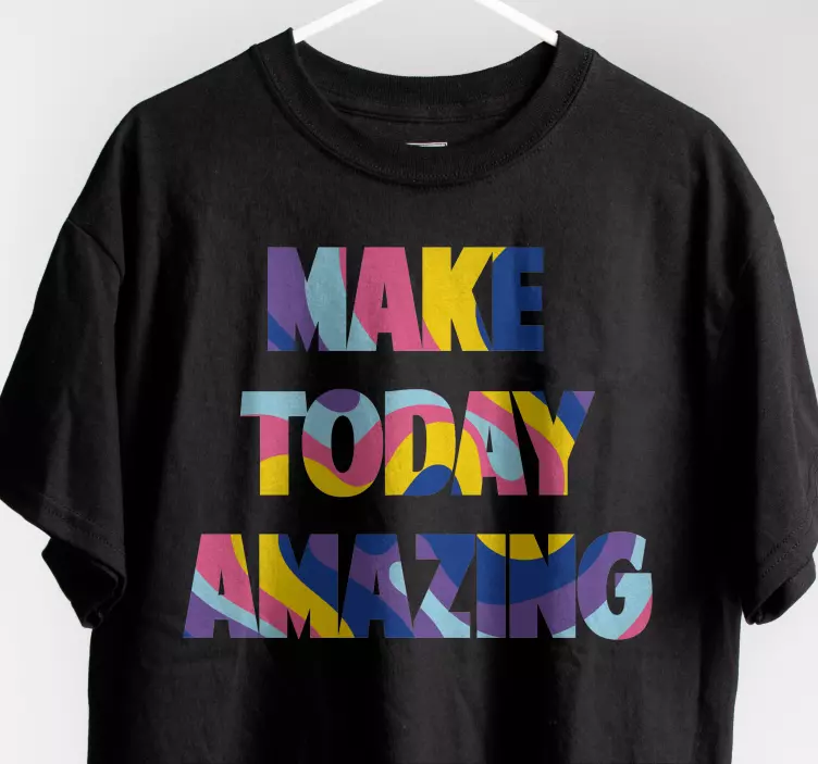 Introducing the Make today amazing t-shirt, a vibrant and modern piece that combines bold typography with a colorful design. This t-shirt features an inspirational motivational sentence that encourages positivity and motivation in your everyday life. The multicolor text is visually striking, making it a perfect addition to your wardrobe that not only looks great but also uplifts your spirit!