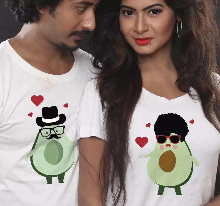 Reference: T4161This vibrant design features adorable avocados dressed in stylish accessories, depicting a loving couple. The playful elements include hearts, adding warmth and humor. Ideal for expressing affection, this unique concept captures joy, making it a fun addition for those who appreciate lighthearted themes.