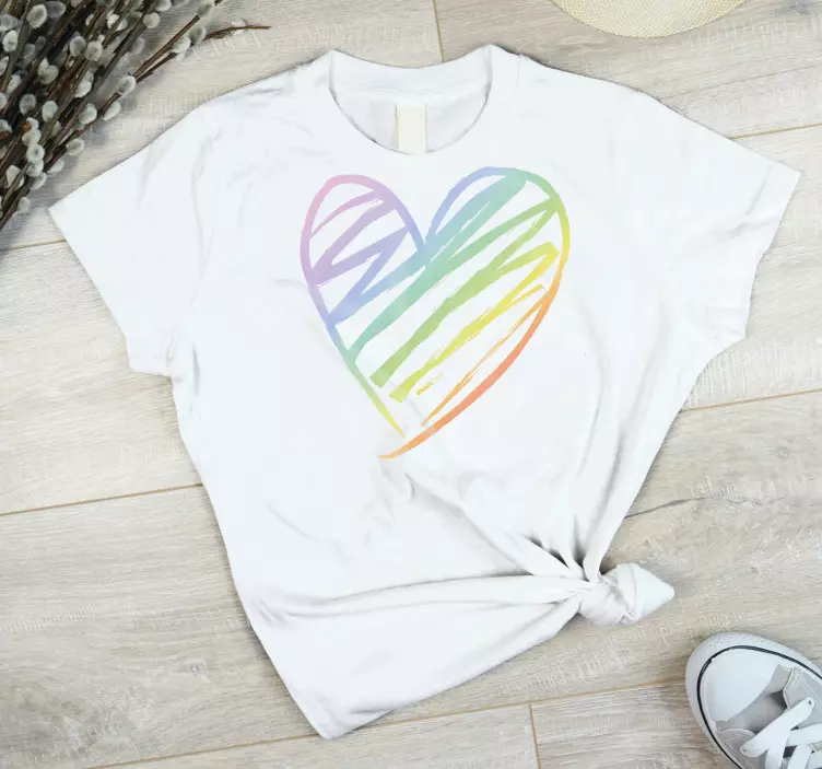Experience a burst of creativity with our Multicolored heart design t-shirt, where a stunning rainbow of colors melds into a whimsical heart doodle. This stylish and casual t-shirt features a unique gradient design that captures attention and radiates joy. Perfect for those who wish to express their vibrant personality, this t-shirt is a must-have for your wardrobe!