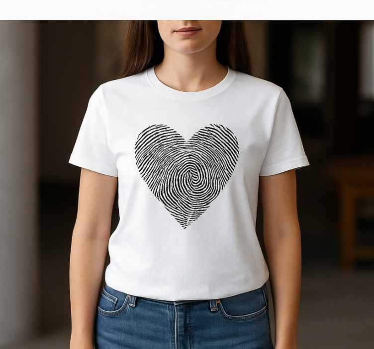 Reference: T5521Introducing our stunning Personalized heart fingerprint t-shirt, a unique blend of style and sentiment! This beautifully designed t-shirt features a heart shape crafted from intricate fingerprint patterns, symbolizing love and connection. With a round neck and short sleeves, it's perfect for casual outings while providing a comfortable fit made from 85% cotton and 15% viscose. Available in classic black and white, this t-shirt is not only fashionable but also a heartfelt gift for your loved ones!