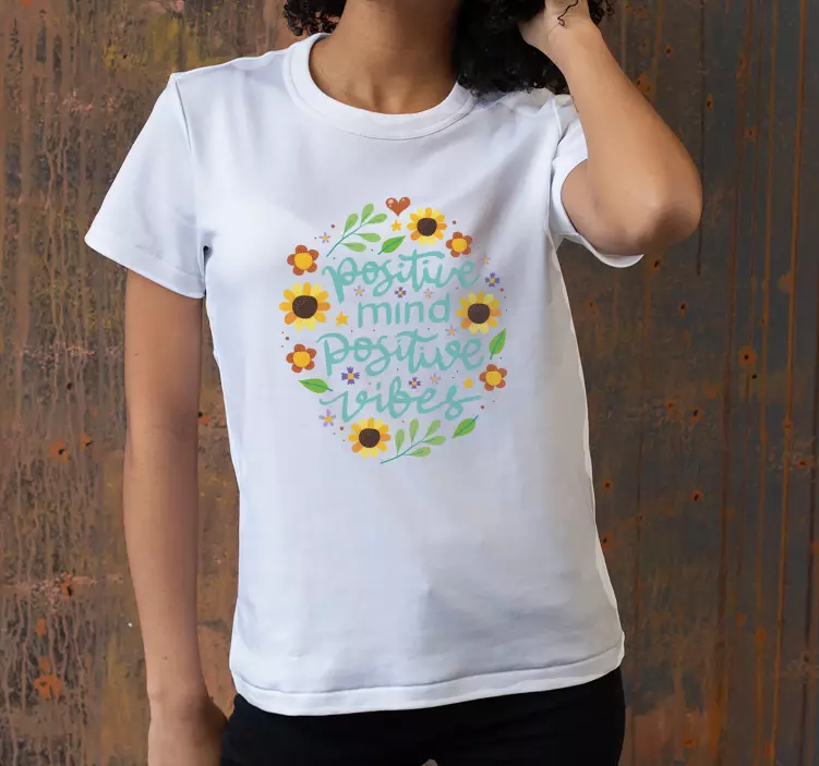 Embrace the essence of positivity with our Positive mind vibes t-shirt. This vibrant design features enchanting sunflowers and heartfelt motivational text, combining nature's beauty with uplifting vibes. The infusion of flowers and a heart symbolizes mindfulness and motivation, making this t-shirt a perfect choice for anyone looking to spread good energy!