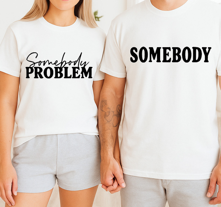 When it comes to connecting with your partner, the Somebody's problem couple t-shirts are a perfect choice! These couple t-shirts not only showcase your relationship in a light-hearted manner, but they also serve as a conversation starter wherever you go. Wearing these t-shirts is a fun way to express your bond and create memories together. Elevate your couple style and grab these t-shirts today!