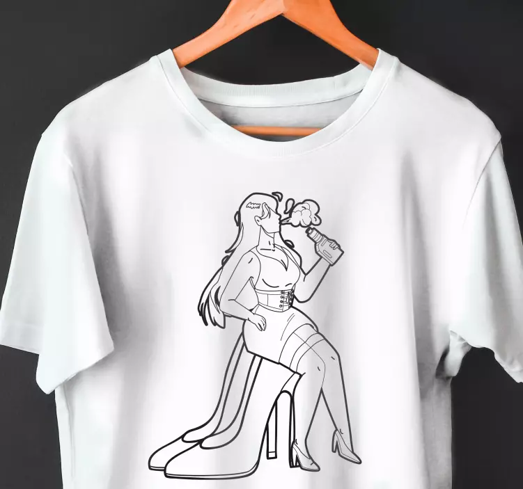 Introducing our Stylish high heel vibe t-shirt, a stunning blend of elegance and creativity! This unique design features a woman's silhouette in a hand-drawn style, showcasing high heels that exude confidence and charm. The illustration captures a moment of sophistication, where fashion meets a touch of playful rebellion, as the figure enjoys a cocktail while smoking and vaping. This graphic t-shirt is not just a piece of clothing; it’s a statement of style!