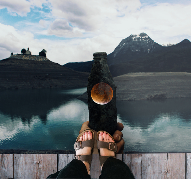 Immerse yourself in the enchanting beauty of nature with our Bottle Moon View nature vinyl carpet. This stunning design features a serene landscape adorned with majestic mountains, a tranquil lake, and a mesmerizing reflection of the moon illuminating the scene. The inclusion of a bottle and lamp adds a unique touch, creating a perfect blend of nature-inspired aesthetics that will captivate anyone who enters the room!