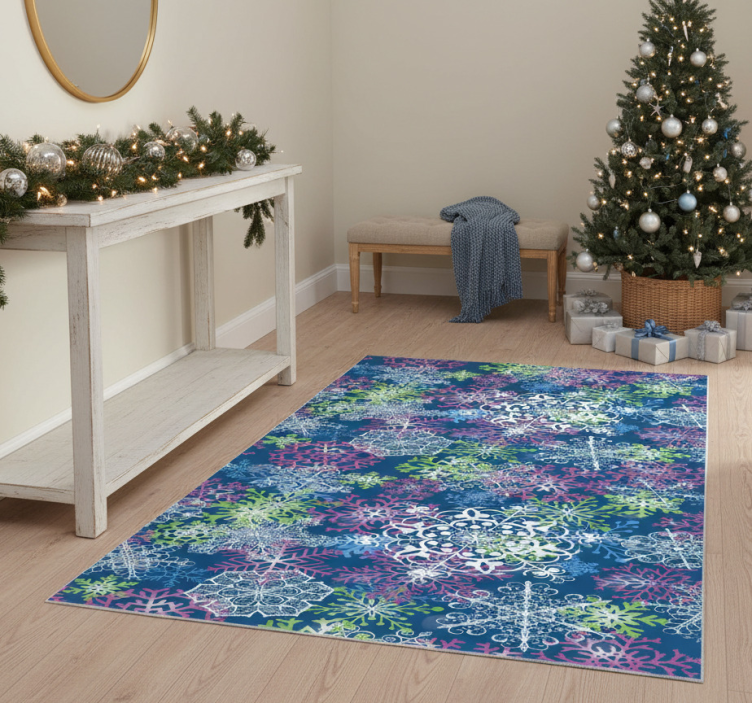 The Christmas vinyl carpet with glowing snowflakes on blue Christmas vinyl carpet is not just a floor covering; it's a statement piece that transforms your space into a festive haven! Ideal for living rooms, playrooms, or entryways, this carpet adds a touch of holiday cheer while providing a comfortable and inviting surface. Its delightful design captures the essence of the season, making every gathering feel extra special!