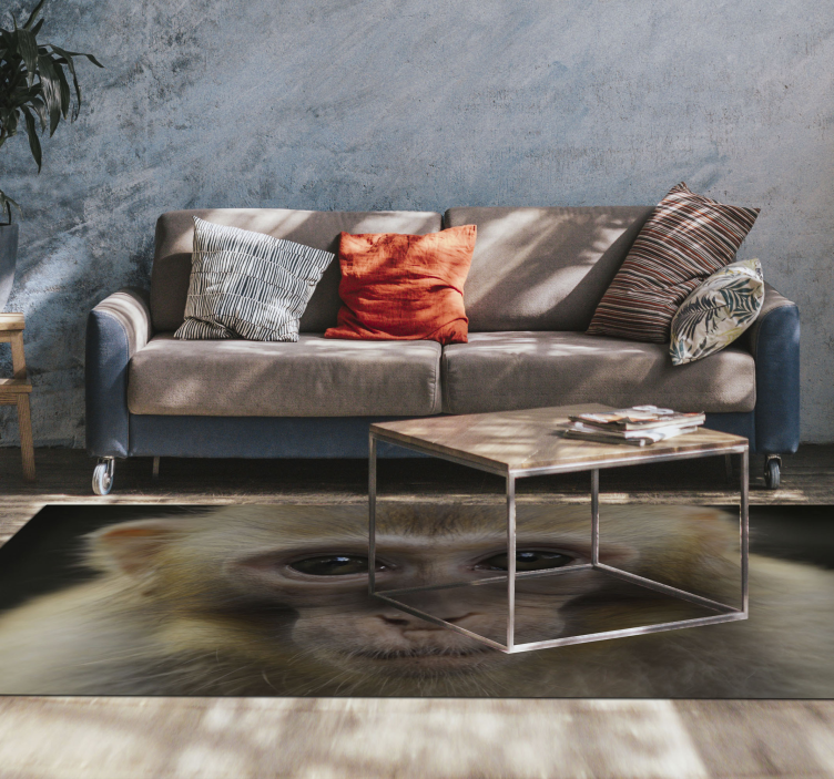 The Baby monkey face animal vinyl carpet showcases an enchanting design that captures the essence of wildlife through a stunning portrait of a monkey. This vibrant piece brings a touch of nature into your home, celebrating the beauty of animal photography in a way that is both playful and sophisticated.