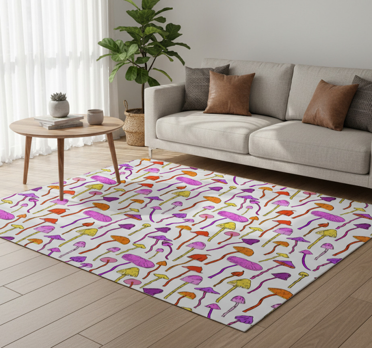 The Floral vinyl carpet with psychedelic mushroom design floral vinyl carpet is a fantastic way to elevate your home decor! Its lively colors and intricate patterns inspire a sense of wonder and playfulness, making it ideal for living rooms, bedrooms, or play areas. This carpet isn't just a floor covering; it's a statement piece that brings life and personality to your space, inviting creativity and warmth!